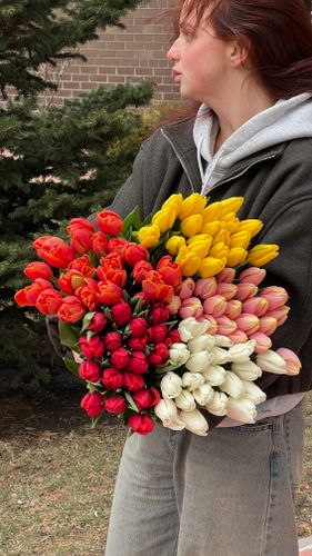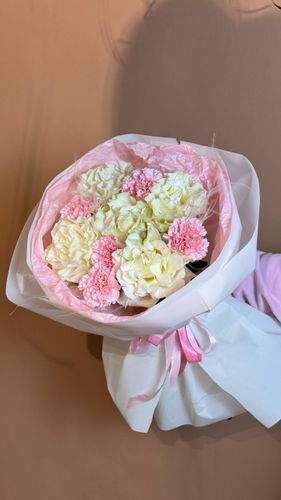 📏 Обратите внимание на размеры букета — 45 см в ширину и 60 см в высоту. Возможны небольшие отличия по объёму и форме, так как каждый букет в нашей студии флористики собирается индивидуально и вручную.