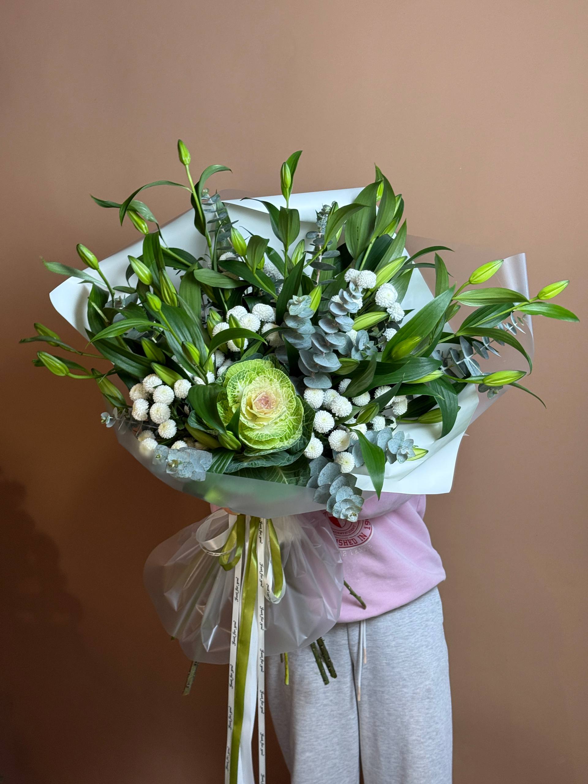 Букет "Королевский Сад" от цветочной мастерской "Трава доставка цветов" - это роскошная и величественная композиция, созданная из изящных лилий, утонченной брасики, воздушных хризантем-пуговок и элегантного эвкалипта. Этот букет способен покорить своей красотой и подарить ощущение истинной роскоши.
