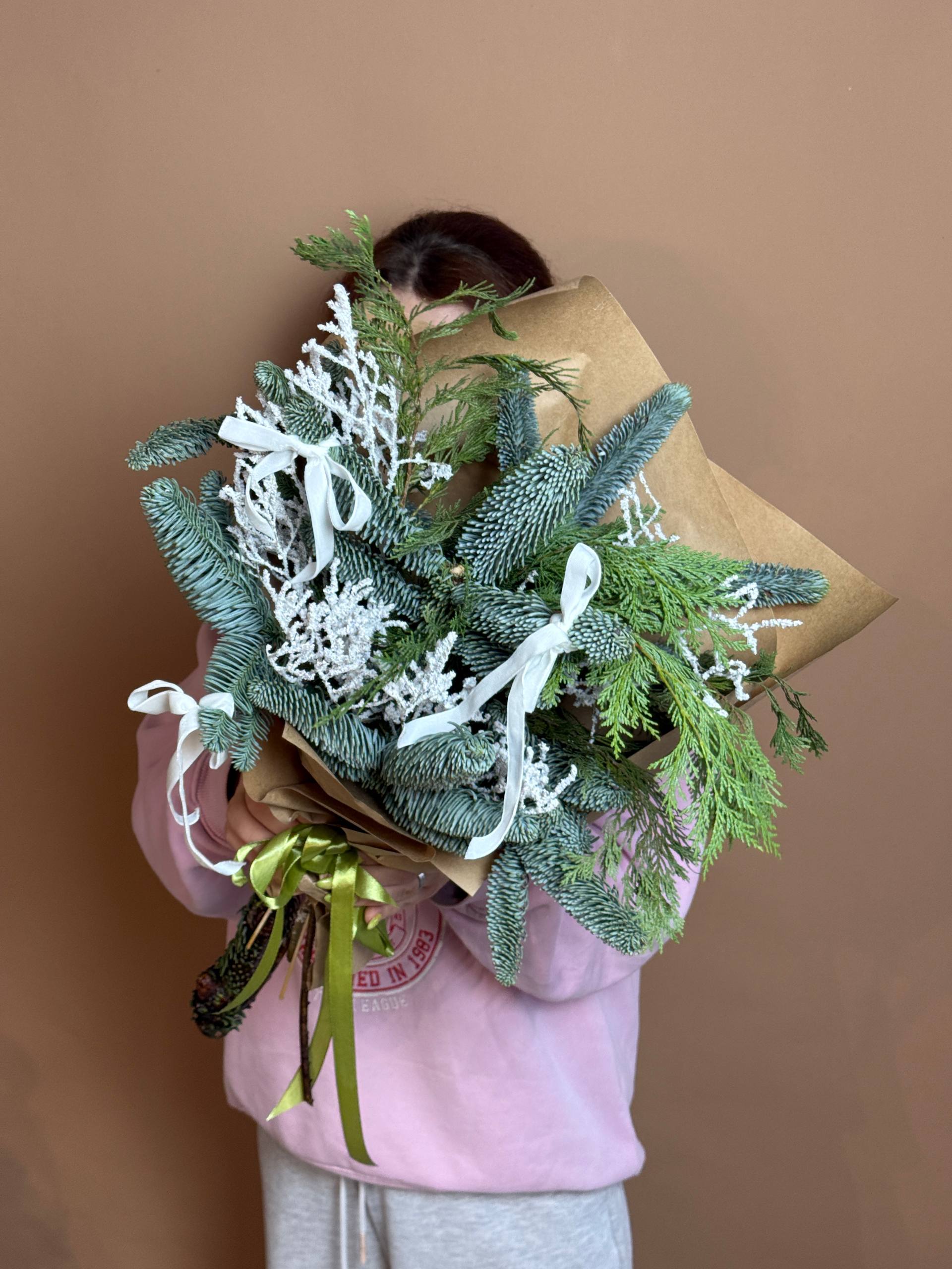 "Трава доставка цветов" представляет букет "Лесная Вуаль" – изысканная и воздушная композиция, сотканная из природной свежести и утонченных деталей. Этот букет, где ароматные ветки нобилиса и туи гармонично сочетаются с легким кермеком и милыми декоративными бантиками, создает ощущение таинственности и уюта.
