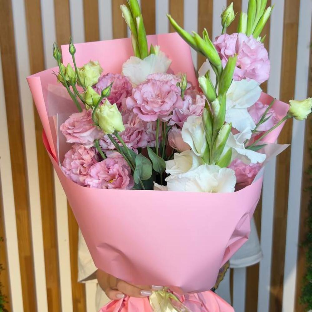 Букет «Эмили» — нежная и изысканная композиция, созданная для особых моментов. Лёгкая эустома придаёт букету воздушность, а стройные гладиолусы добавляют торжественности и изящества. Такой букет станет прекрасным выражением благодарности и любви для мамы.