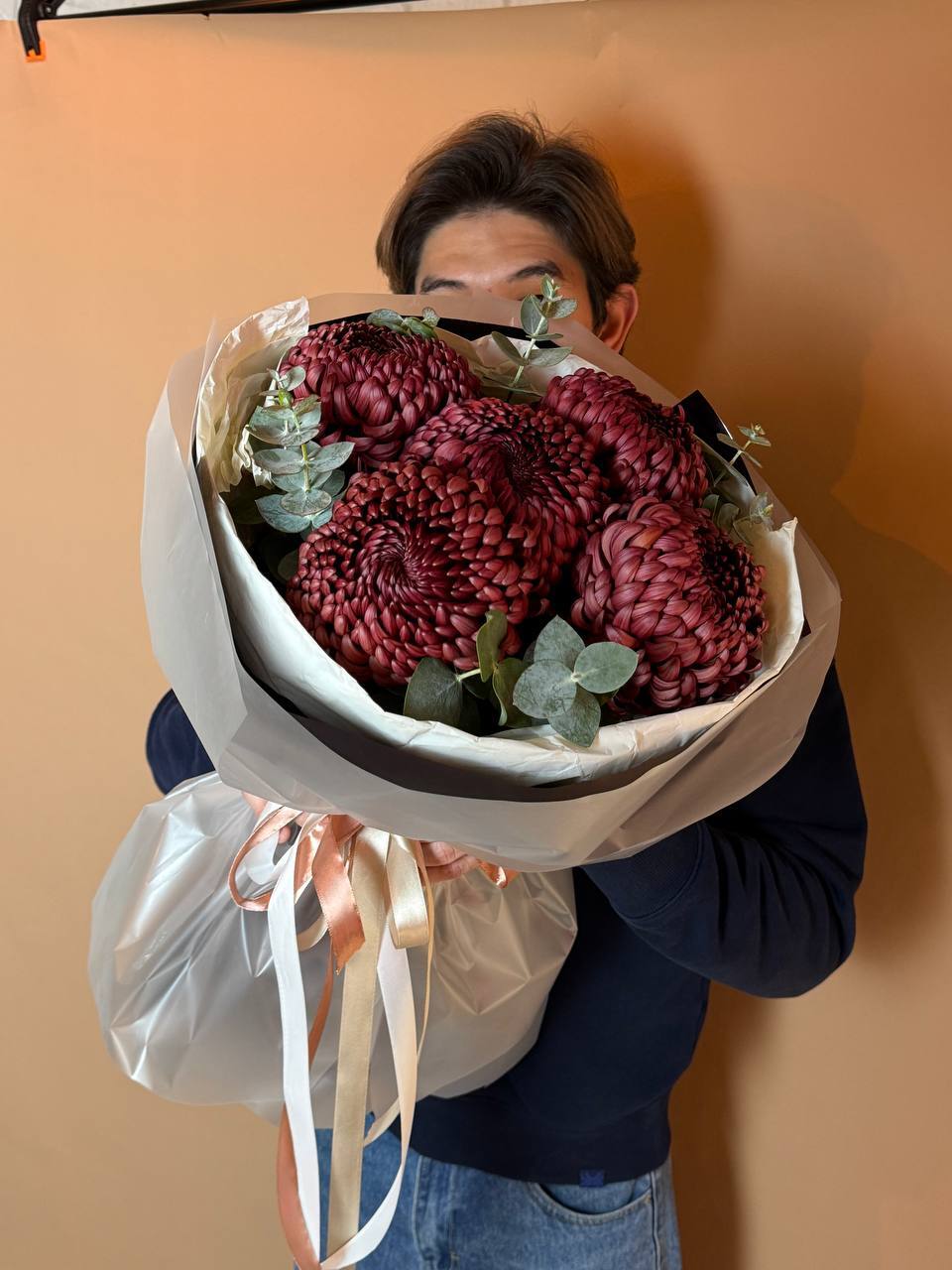 "Трава доставка цветов" представляет букет "Шоколадный Восторг" – изысканная и утонченная композиция, способная подарить истинное наслаждение. Этот букет, состоящий из благородных шоколадных хризантем и ароматного эвкалипта, станет идеальным выражением теплоты и внимания.