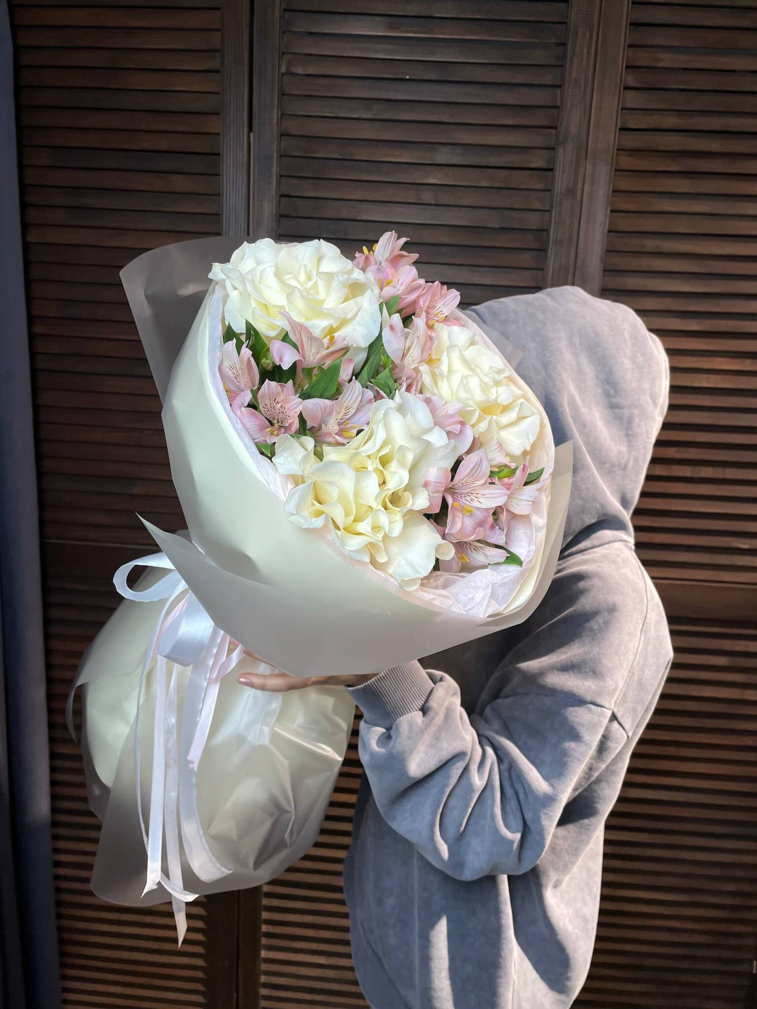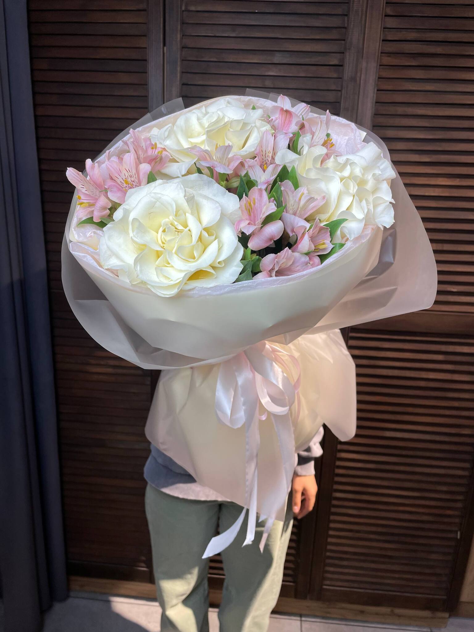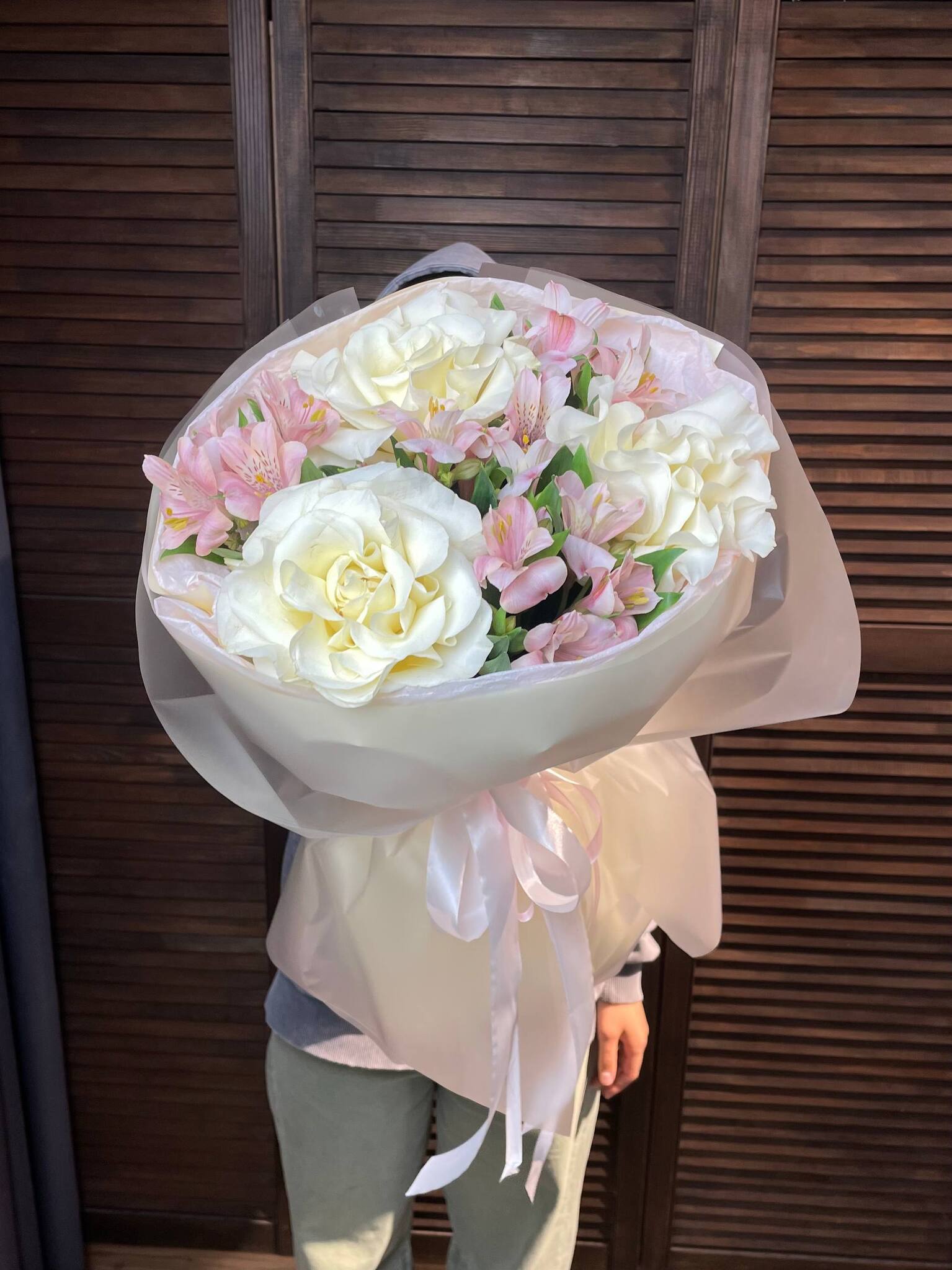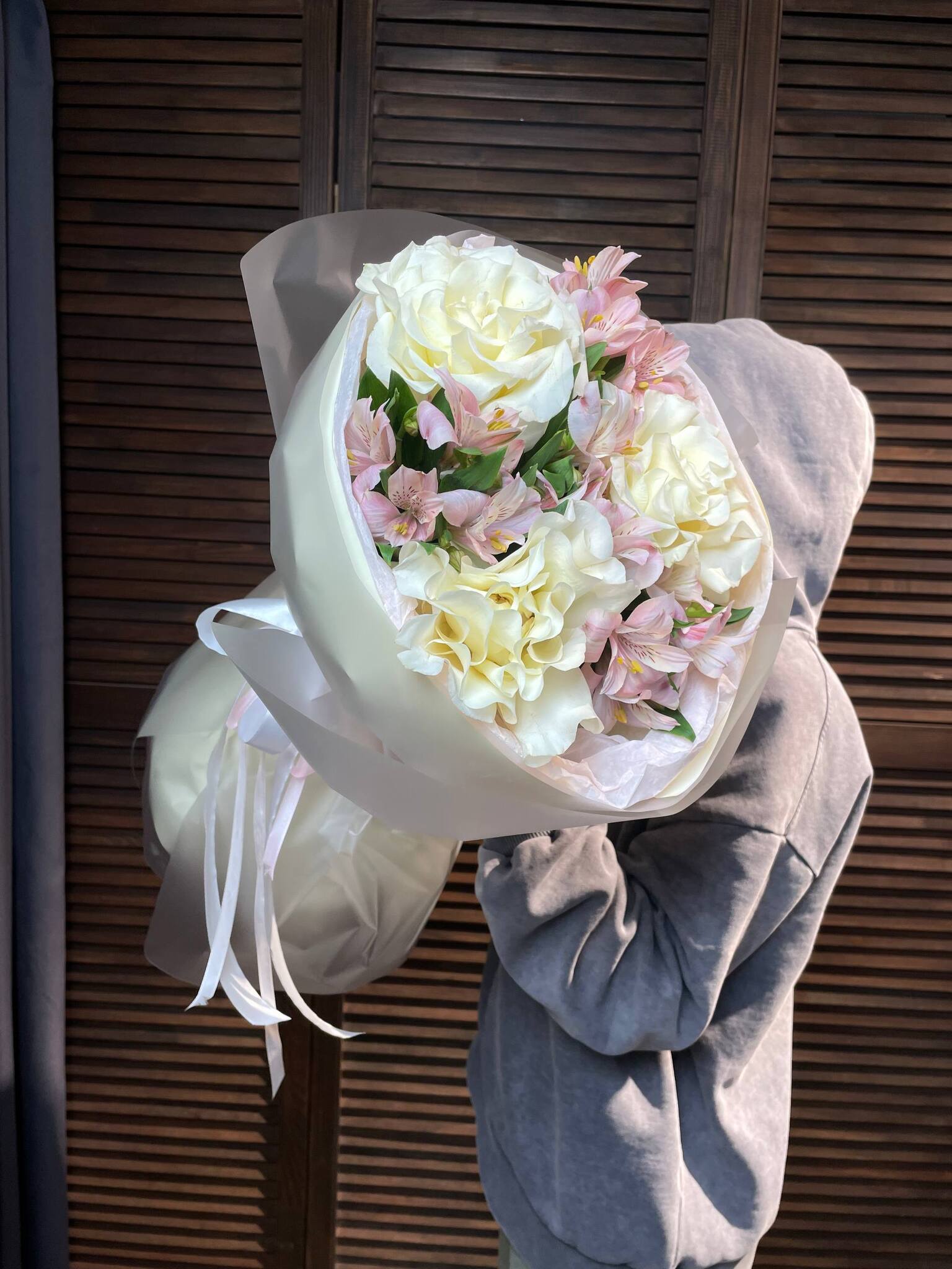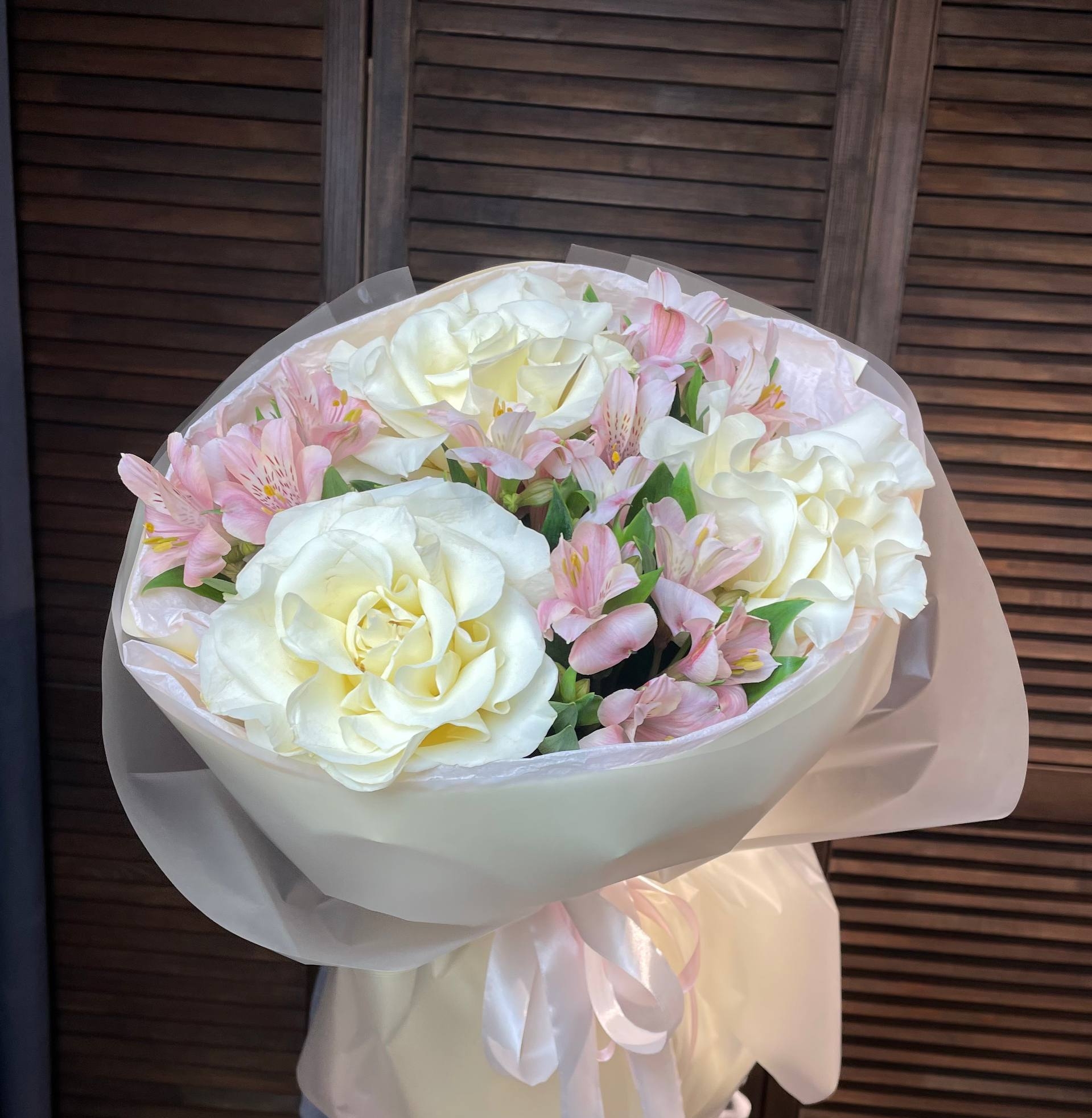 ## Букет "Взбитые сливки" - нежная симфония французских роз и альстромерии